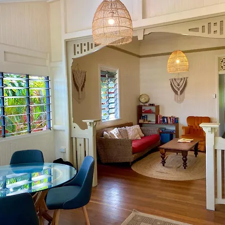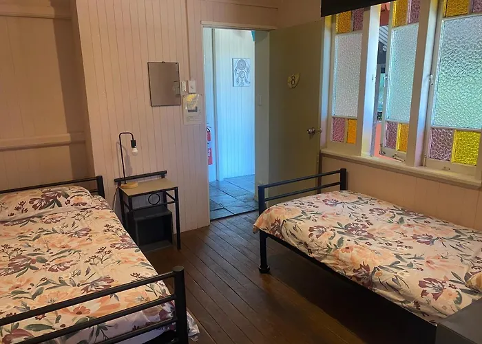 Travellers Paradise is a historical, heritage-listed guest house located just 1 km from Cairns Convention Centre. Guests can choose from various rooms, including shared accommodations with high ceilings and shared bathroom facilities. The hostel features a large swimming pool and kitchen, facilitating a social atmosphere. Additionally, its tour desk can assist with arrangements for rainforest tours and reef trips. Proximity to the central shopping district adds convenience for visitors.